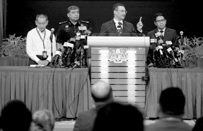 昨天,馬方發(fā)布會在吉隆坡舉行,代理交通部長希沙姆?。ㄗ笕┰诎l(fā)布會上答記者問。中新社發(fā)