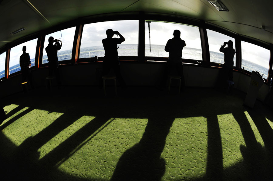 ????經(jīng)中國海上搜救中心同意,“雪龍”號科考船28日下午全速趕往澳大利亞海事安全局最新調(diào)整的搜尋區(qū),并將與“海巡01”會合,進行中方船只現(xiàn)場指揮聯(lián)絡(luò)工作的交接。根據(jù)國際調(diào)查團隊向澳方提出的建議,澳大利亞海事安全局28日調(diào)整了搜索部署,搜尋范圍發(fā)生較大改變。新華社記者張建松攝