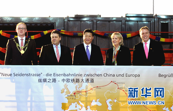 ????習(xí)近平表示,中方提出建設(shè)絲綢之路經(jīng)濟(jì)帶倡議,秉承共同發(fā)展、共同繁榮的理念,聯(lián)動(dòng)亞歐兩大市場(chǎng),賦予古絲綢之路新的時(shí)代內(nèi)涵,造福沿途各國(guó)人民。中德位于絲綢之路經(jīng)濟(jì)帶兩端,是亞歐兩大經(jīng)濟(jì)體和增長(zhǎng)極,也是渝新歐鐵路的起點(diǎn)和終點(diǎn)。兩國(guó)應(yīng)該加強(qiáng)合作,推進(jìn)絲綢之路經(jīng)濟(jì)帶建設(shè)。杜伊斯堡港是世界最大內(nèi)河港和歐洲重要交通物流樞紐,希望它能為促進(jìn)中德、中歐合作發(fā)展發(fā)揮更大作用。