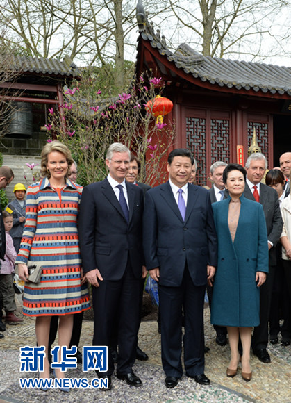 ????3月30日,國(guó)家主席習(xí)近平和比利時(shí)國(guó)王菲利普共同出席比利時(shí)天堂公園大熊貓園開(kāi)園儀式。這是習(xí)近平和夫人彭麗媛同菲利普國(guó)王夫婦在象征友誼的玉蘭樹(shù)前合影。 新華社記者 馬占成 攝