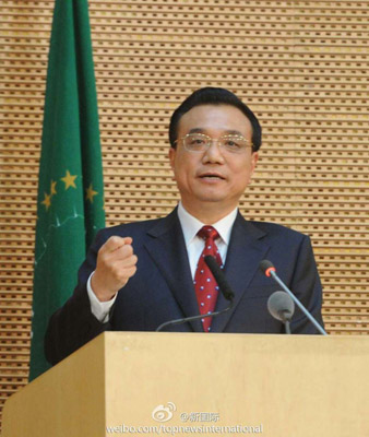 新華網(wǎng)北京5月6日電 據(jù)新華社“新國(guó)際”微博報(bào)道,李克強(qiáng)總理5日在非盟會(huì)議中心演講時(shí)談到:中國(guó)愿意毫無(wú)保留地與非洲共享先進(jìn)技術(shù)與發(fā)展經(jīng)驗(yàn),不斷加強(qiáng)中非生態(tài)環(huán)保領(lǐng)域合作,增強(qiáng)人文互動(dòng),同心共創(chuàng)中非關(guān)系更加美好的未來(lái),在國(guó)際舞臺(tái)展示中非鋼鐵般的朋友情誼。