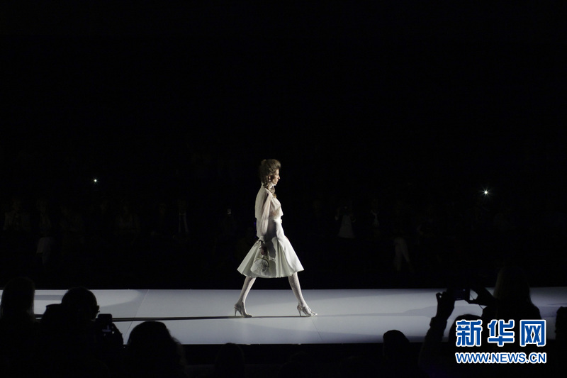 模特在T臺上展示西班牙女服裝設計師 Inmaculada Garcia的婚紗作品。Inmaculada Garcia同時也是來自巴塞羅那當地的一個婚紗品牌。