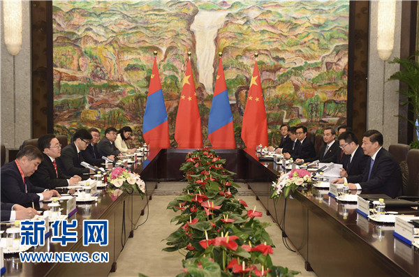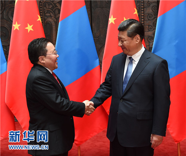 習近平強調,我十分關心和高度重視中蒙關系。兩國領導人要保持密切交往和戰(zhàn)略溝通,實實在在推進兩國合作。兩國立法機構、政黨、軍隊也要加強交往。中蒙經濟互補性強。中方開展對蒙合作堅持互利雙贏原則,不搞我贏你輸、我多你少。中方愿本著礦產資源開發(fā)、基礎設施建設、金融合作“三位一體、統(tǒng)籌推進”原則,以互聯(lián)互通建設為優(yōu)先方向,以建設絲綢之路經濟帶為契機,拓展兩國合作,鼓勵有實力的中國企業(yè)赴蒙投資興業(yè)。中方支持蒙方積極參與國際和地區(qū)事務,愿同蒙方加強在聯(lián)合國、上海合作組織等框架內合作。