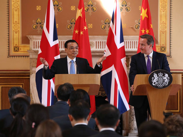 ????在頗有古典特色的英國外交部大樓內(nèi),中國國務院總理李克強與英國首相共同見證了兩國間一系列合作文件的簽署。