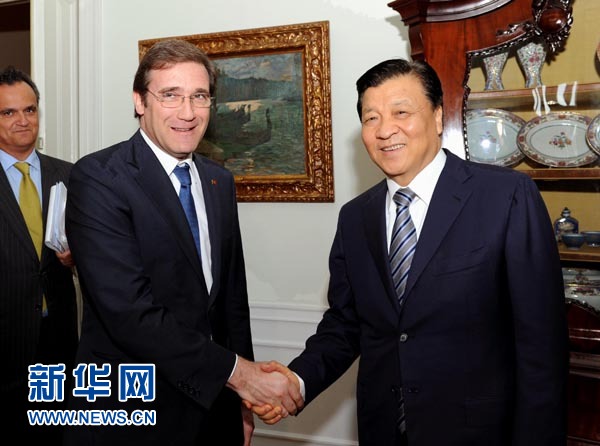 ??? 6月17日至19日,應葡萄牙政府邀請,中共中央政治局常委、中央書記處書記劉云山對葡萄牙進行正式訪問。這是6月18日,劉云山在里斯本會見葡萄牙總理科埃略。 新華社記者 饒愛民 攝