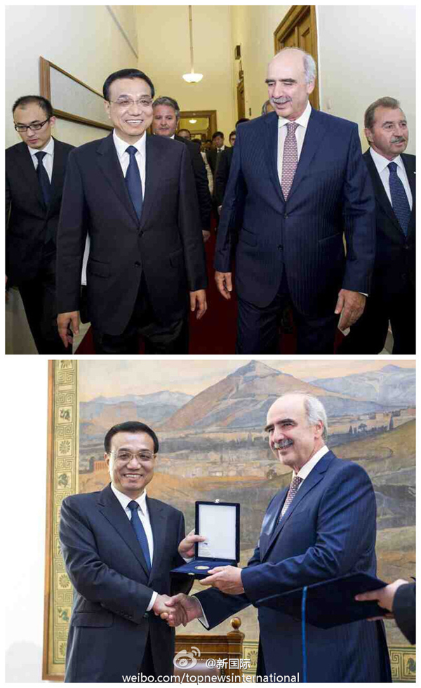 ??? 新華網(wǎng)北京6月20日電 據(jù)新華社“新國(guó)際”微博報(bào)道,19日下午,李克強(qiáng)總理在希臘議會(huì)大廈會(huì)見希臘議長(zhǎng)米馬拉基斯,并被授予希臘議會(huì)金質(zhì)勛章。李克強(qiáng)說(shuō),立法機(jī)構(gòu)交流合作是中希全面戰(zhàn)略伙伴關(guān)系的重要組成部分。中方愿同希臘議會(huì)和政黨加強(qiáng)交流合作,希望希臘議會(huì)繼續(xù)為促進(jìn)中希合作助力添彩。