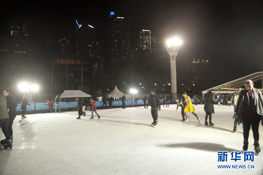 ????6月13日起,為期1個(gè)月的大型冬季冰雪活動(dòng)在悉尼市中心的情人港(Darling Harbour)為悉尼市民冬季的生活增添了些許名副其實(shí)的冬季氣氛。圖為悉尼情人港塔巴隆公園(Tunmbalong Park)上,巨大的戶外滑冰場吸引了成千上萬名市民前來體驗(yàn)。新華社記者 李冰 攝