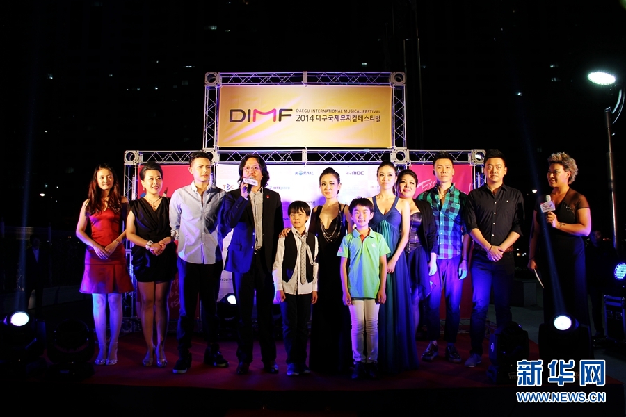 ??? 《媽媽再愛我一次》制作人李盾(左四)與主演們亮相大邱國際音樂劇節(jié)。