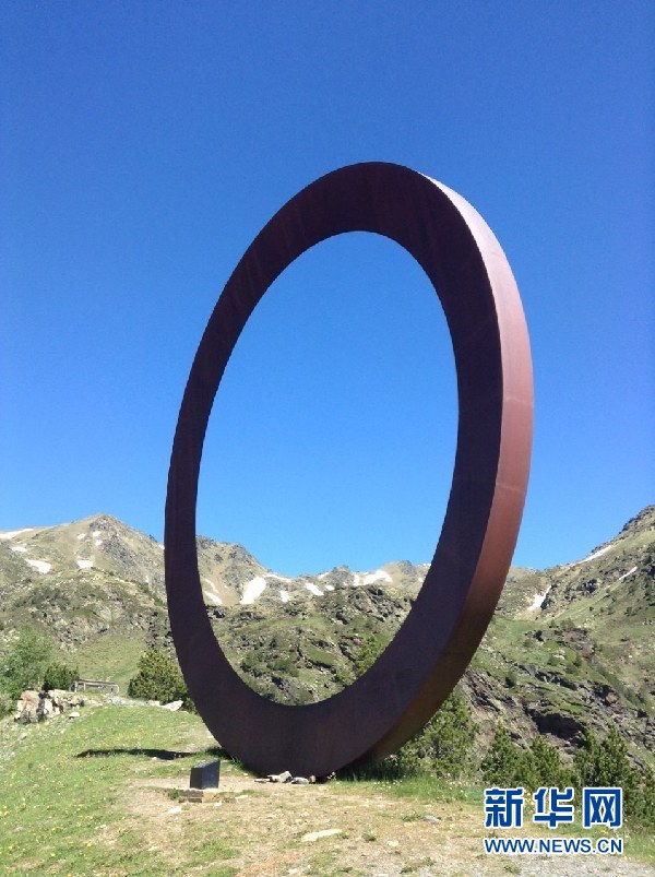 ????安道爾境內(nèi)山路邊上的一個雕塑,根據(jù)旁邊的說明,這個圓環(huán)象征著“永恒與寧靜”。(周喆 攝)
