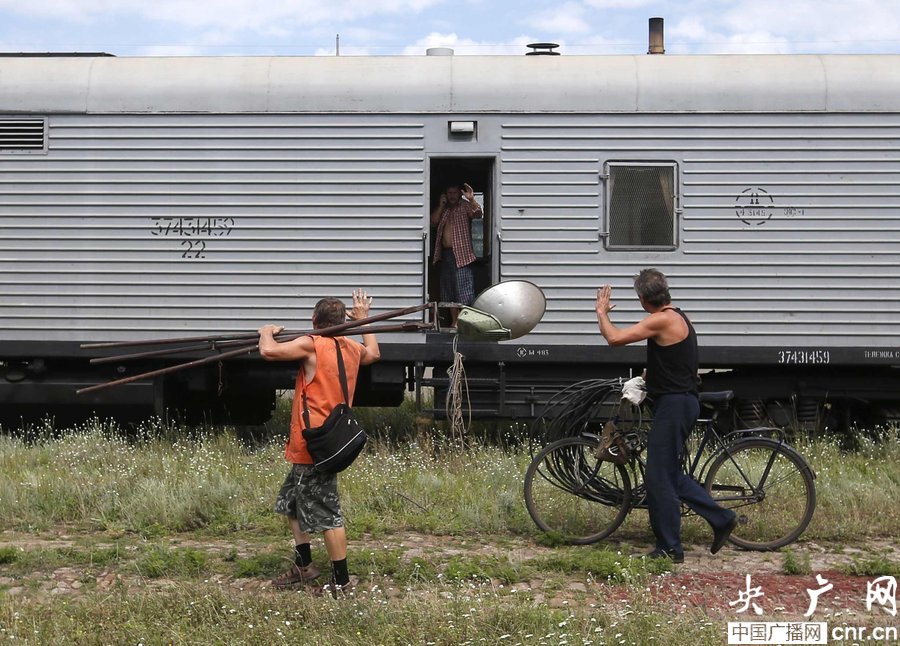 當?shù)貢r間2014年7月20日,烏克蘭頓涅茨克Torez,馬航墜機遇難乘客遺體被裝上列車冷藏車廂將被運走。載有部分遺體的火車從距空難現(xiàn)場不遠的烏克蘭托列茲市出發(fā),前往頓涅茨克市?;疖囯x站前,身處空難現(xiàn)場的歐洲安全與合作組織(歐安組織)代表檢查了運載遺體的5節(jié)冷藏車廂。