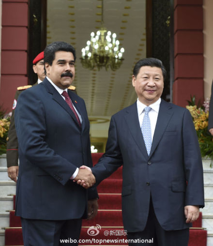 ????新華網(wǎng)北京7月21日電 據(jù)新華社“新國際”微博報道,習(xí)近平20日同馬杜羅總統(tǒng)會談時說,我們要加強(qiáng)頂層設(shè)計,以金融和投資為引擎,以能源合作為主軸,基礎(chǔ)設(shè)施建設(shè)、農(nóng)業(yè)、礦業(yè)、科技合作等多個輪子一起轉(zhuǎn),促進(jìn)中委合作全方位發(fā)展。(李學(xué)仁攝)