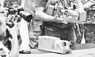 圖為7月22日凌晨,在烏克蘭頓涅茨克州,媒體記者在移交儀式上拍攝馬航MH17航班客機(jī)黑匣子。新華社發(fā)