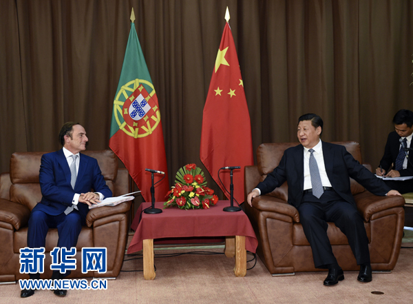 ????波塔斯表示,葡中兩國成功解決了澳門問題,為國與國之間解決歷史遺留問題樹立了榜樣。前幾年,當葡萄牙面臨經(jīng)濟困難時,中方向我們提供了寶貴支持和幫助,我們感謝中國。葡方贊賞中國夢,相信中國將為促進世界和平與發(fā)展發(fā)揮越來越重要的作用。葡萄牙愿意發(fā)展同中國的全面戰(zhàn)略伙伴關(guān)系,加強政治對話,擴大經(jīng)貿(mào)、投資、海洋、旅游等領(lǐng)域合作。葡萄牙經(jīng)濟正在好轉(zhuǎn),歡迎中國企業(yè)積極參與其中。葡方愿意積極促進歐盟同中國關(guān)系發(fā)展。波塔斯祝賀習近平拉美之行取得成功,表示葡方愿意利用自身優(yōu)勢,同中方加強在拉美、非洲事務中的合作。