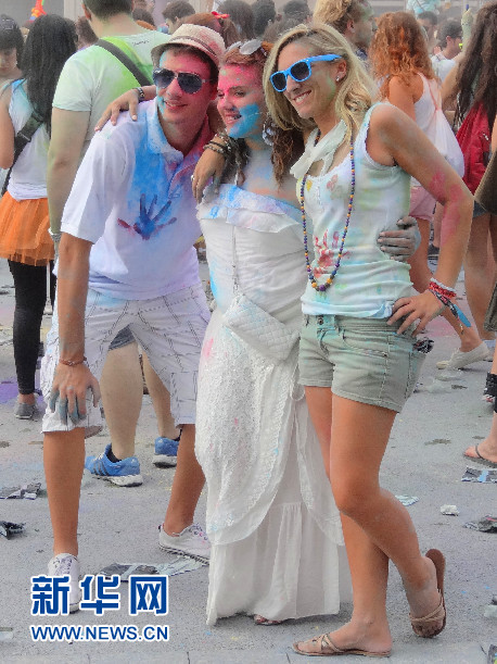 “2014巴塞羅那霍利節(jié)”現(xiàn)場(chǎng)的年輕人 (新華社記者周喆拍攝)