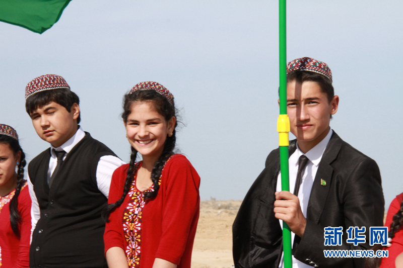 身穿紅色連衣裙的土庫曼斯坦大學(xué)生? 記者 盧敬利攝