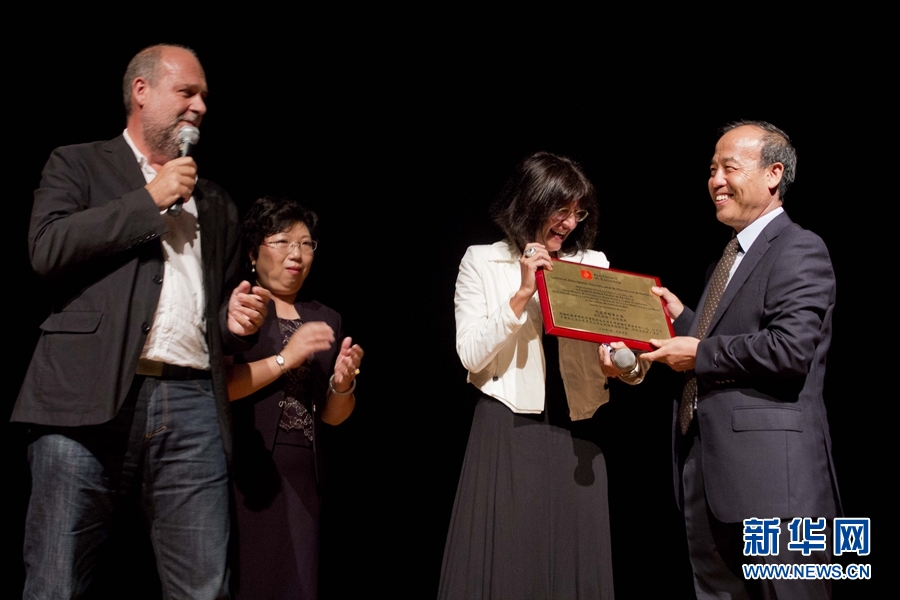 巴塞羅那市政府代表向巴塞羅那孔子學(xué)院頒獎。新華網(wǎng)發(fā) Xesco攝