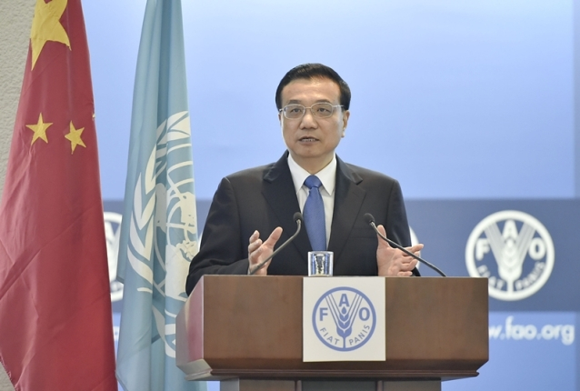 ????面對聯(lián)合國三大糧農(nóng)機(jī)構(gòu)的數(shù)百名代表,克強(qiáng)總理發(fā)表演講。從中國元素、中國經(jīng)驗到中國聲音,克強(qiáng)總理對糧農(nóng)組織的訪問讓世界看到了應(yīng)對饑餓和貧困的中國希望。
