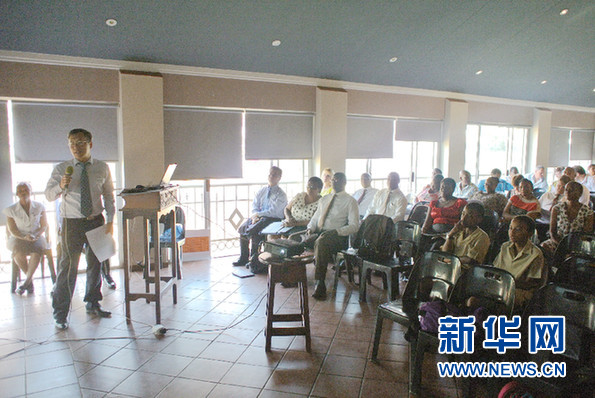 ????中國文化和國際教育交流中心負(fù)責(zé)人、南非漢語推廣委員會(huì)委員陸志雷博士介紹漢語教學(xué)情況。新華社記者郭興華 攝