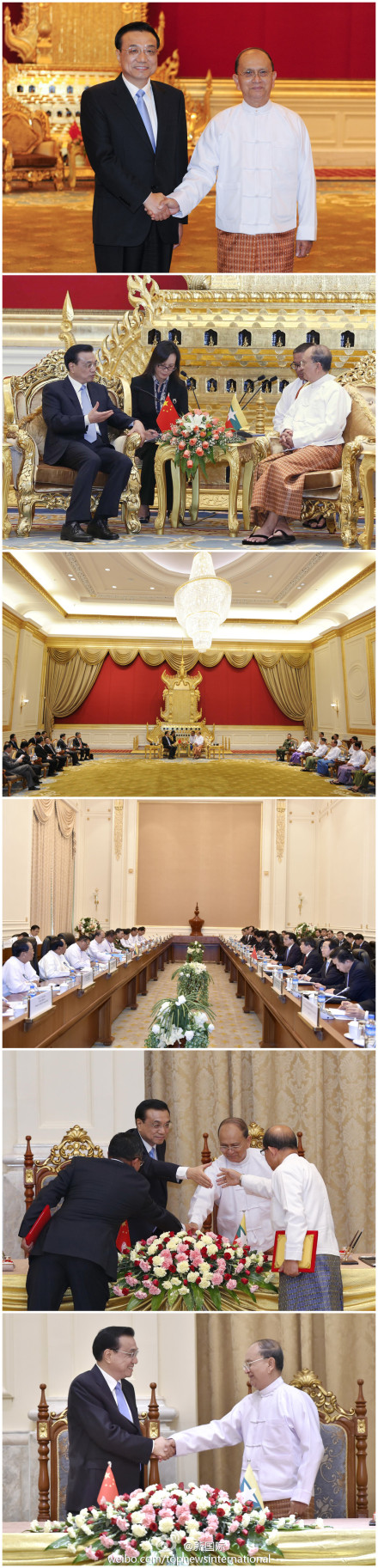 ??? 新華網(wǎng)北京11月14日電 據(jù)新華社“新國際”微博報(bào)道,李克強(qiáng)總理14日在內(nèi)比都與緬甸總統(tǒng)吳登盛會談時說,中緬“胞波”情誼深厚,愿中緬永做好鄰居、好朋友、好伙伴,中國政府支持中國企業(yè)參與緬基礎(chǔ)設(shè)施建設(shè),使更多當(dāng)?shù)孛癖娛芤妗労?,兩國領(lǐng)導(dǎo)人見證了經(jīng)貿(mào)、農(nóng)業(yè)、金融、能源等領(lǐng)域合作文件的簽署。