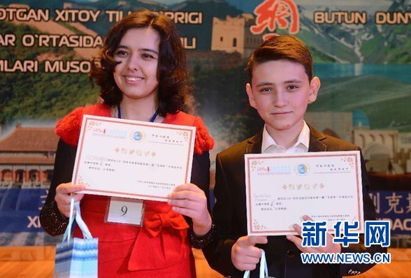 并列獲得烏茲別克斯坦第一屆“漢語橋”中學(xué)生中文比賽第二名的塔什干59中學(xué)的濟耶杜拉耶夫和東方學(xué)院尤努薩巴特區(qū)附中的希托拉波魯(女)。