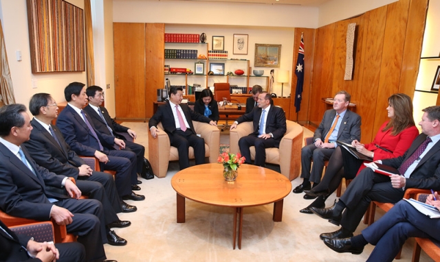 ??? 11月17日,中國國家主席習(xí)近平與澳大利亞總理阿博特在澳大利亞首都堪培拉舉行會(huì)談。新華社記者龐興雷攝