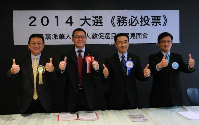 (資料圖片:新西蘭華人競(jìng)選2014年國(guó)會(huì)議員,右二為楊健。新華社記者田野攝)