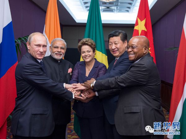 ????——金磚國家領(lǐng)導(dǎo)人非正式會晤一致同意要加強(qiáng)全方位合作,落實(shí)好巴西福塔萊薩會晤成果,加快推進(jìn)金磚國家開發(fā)銀行和應(yīng)急儲備安排有關(guān)建設(shè)進(jìn)程,密切溝通和協(xié)調(diào),維護(hù)共同利益。