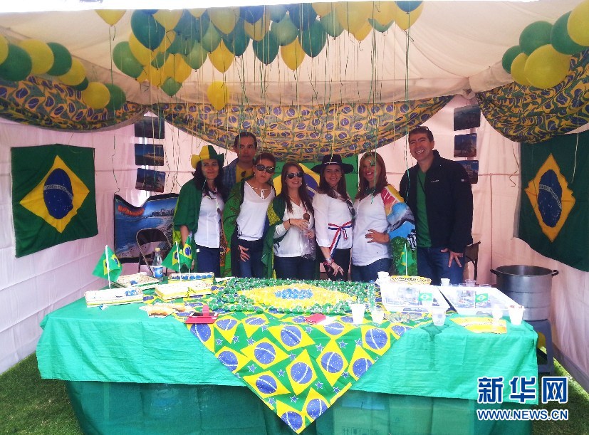 ????“桑巴軍團”的攤位布置讓人覺得仿佛又回到了世界杯。(新華網(wǎng)記者 梁君茜 攝)