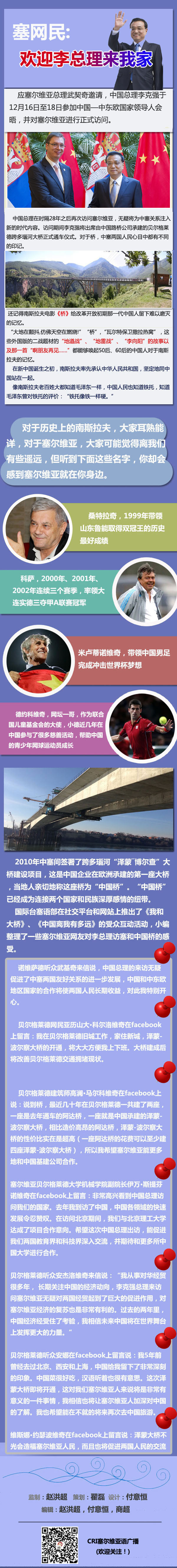 應(yīng)塞爾維亞總理武契奇邀請(qǐng),中國(guó)總理李克強(qiáng)于12月16日至18日參加中國(guó)-中東歐領(lǐng)導(dǎo)人會(huì)晤,并對(duì)塞爾維亞進(jìn)行正式訪問。