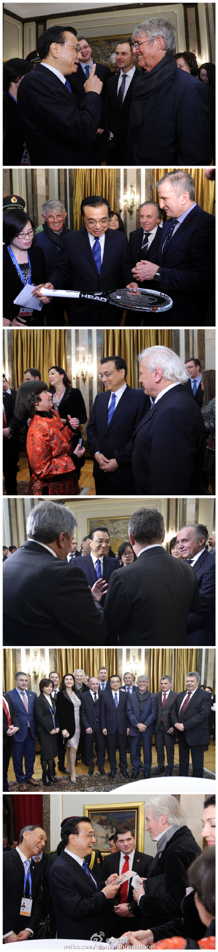 ??? 當?shù)貢r間18日下午,李克強總理在塞爾維亞接受“貝爾格萊德榮譽市民”證書后,同在場的塞各界知名人士交流。他們既有為人熟知的電影演員、足球教練,也有歌劇表演藝術(shù)家和長期研究中國的漢學家??偫硗麄冇H切交談,現(xiàn)場氣氛友好熱烈。