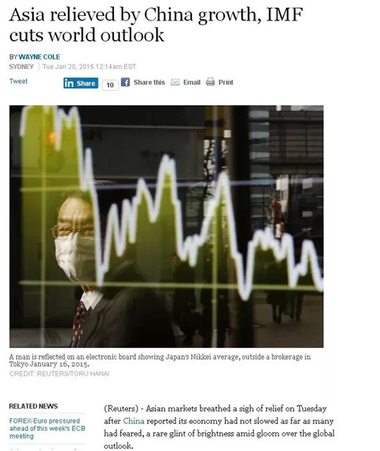 路透社1月20日報道稱中國經(jīng)濟發(fā)展腳步放緩程度仍舊保持在預(yù)期范圍內(nèi),并沒有許多人想象中的那樣嚴重,使得整個亞洲市場松了口氣。