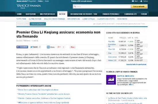 意大利askanews21日報道稱中國國家總理李克強參加達沃斯經(jīng)濟論壇并發(fā)表講話,向世界傳達了一個令人放心的信息——中國經(jīng)濟不會進入硬著陸階段,經(jīng)濟增長不會遭遇急剎車。