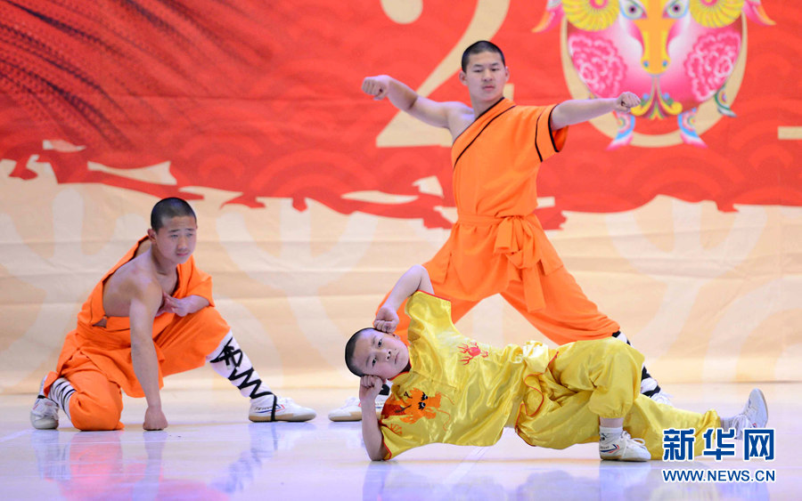2月4日晚,在烏茲別克斯坦首都塔什干突厥宮,藝術(shù)家在表演中國武術(shù)和舞蹈。新華網(wǎng)記者 沙達提 攝