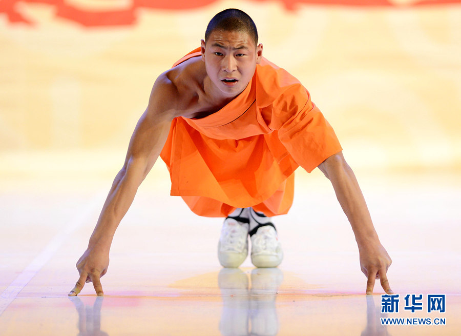 2月4日晚,在烏茲別克斯坦首都塔什干突厥宮,藝術家在表演中國武術和舞蹈。新華網(wǎng)記者 沙達提 攝