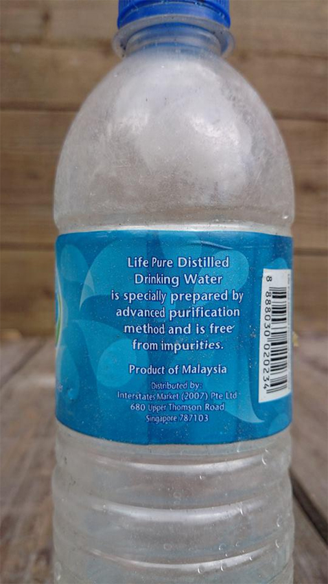 圖為當?shù)芈蓭煱l(fā)現(xiàn)的礦泉水瓶,上面標有“產自馬來西亞”。