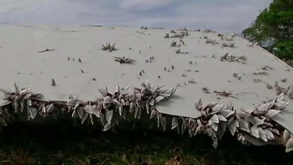 波音777襟副翼殘骸表面布滿(mǎn)貝殼(網(wǎng)頁(yè)截圖)