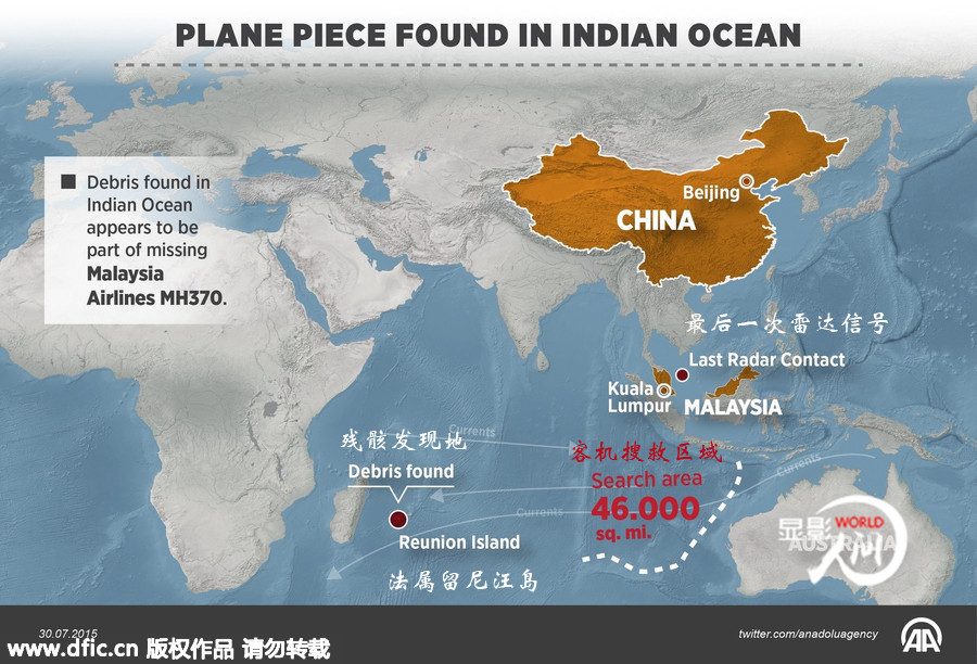 8月2日,馬來西亞交通部發(fā)表官方聲明,證實(shí)此前在法屬留尼汪島發(fā)現(xiàn)的飛機(jī)機(jī)翼殘骸屬波音777客機(jī)。而2014年3月失蹤的馬航MH370航班正是波音777機(jī)型。