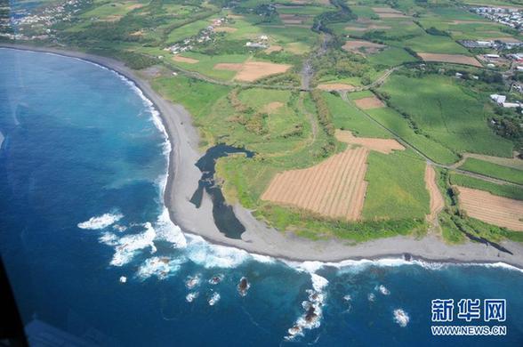 這是8月9日航拍的法屬留尼汪島東部海域和沿岸。 當日,法國政府恢復(fù)因天氣原因而暫停一天的在法屬留尼汪島東部海域的搜尋工作。 新華社記者 張川石 攝