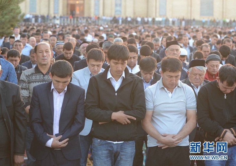 ?。乖拢玻慈眨跒跗潉e克斯坦首都塔什干哈斯特·伊瑪姆建筑群清真寺廣場,人們參加古爾邦節(jié)禮拜。當(dāng)天,烏茲別克斯坦各地慶祝伊斯蘭教傳統(tǒng)節(jié)日古爾邦節(jié)?!肮艩柊罟?jié)”亦稱“宰牲節(jié)”,是伊斯蘭教三大節(jié)日之一。 新華社記者沙達(dá)提 攝