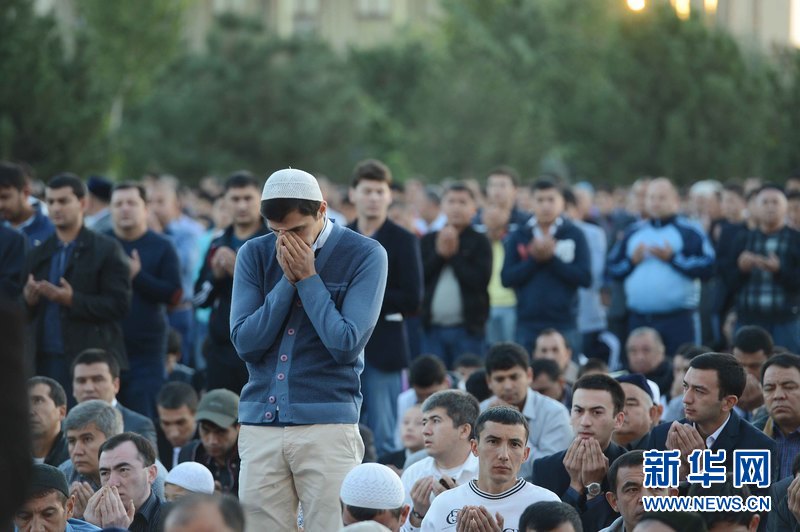 9月24日,在烏茲別克斯坦首都塔什干哈斯特·伊瑪姆建筑群清真寺廣場,人們參加古爾邦節(jié)禮拜。當天,烏茲別克斯坦各地慶祝伊斯蘭教傳統(tǒng)節(jié)日古爾邦節(jié)?!肮艩柊罟?jié)”亦稱“宰牲節(jié)”,是伊斯蘭教三大節(jié)日之一。 新華社記者沙達提 攝