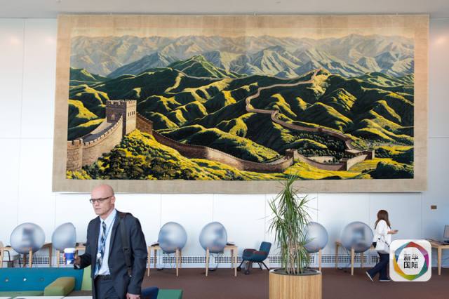 在恢復聯(lián)合國合法席位后不久的1974年,中國將一條長10米、寬5米的長城掛毯贈送給了聯(lián)合國。它由天津地毯公司所屬各廠的15名織毯高手以248種色紗織成,表現(xiàn)了北京居庸關長城的雄姿。40多年來,它一直高掛在聯(lián)合國代表休息北大廳里,不少來聯(lián)合國參觀的人在經(jīng)過時都忍不住駐足觀看。