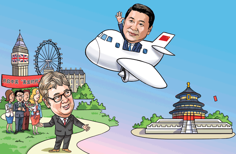 白金漢宮張燈結(jié)彩,契克斯別墅秋意正濃,倫敦金融城翹首企盼——訪問期間,英國王室和政府將高規(guī)格接待習(xí)主席,全球矚目。習(xí)主席將同英方領(lǐng)導(dǎo)人就雙邊關(guān)系和共同關(guān)心的國際地區(qū)問題坦誠、深入交換意見,為兩國關(guān)系確定新的定位、樹立新的目標、制定新的規(guī)劃。習(xí)主席還將出席一系列經(jīng)貿(mào)合作和人文交流活動,在英國議會、倫敦金融城等地發(fā)表重要演講。我們深信,此訪將掀開中英全面戰(zhàn)略伙伴關(guān)系的新篇章,推動中英關(guān)系昂首步入璀璨輝煌的“黃金時代”。(作者系中國社會科學(xué)院世界經(jīng)濟與政治研究所國際政治經(jīng)濟學(xué)研究室副主任徐秀軍 漫畫作者李旻)