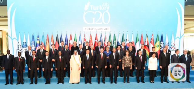 開會之余,來一張“全家?!笔欠鍟膽T例安排。在這張G20峰會“全家?!崩铮瑖抑飨暯脚c土耳其總統(tǒng)埃爾多安并肩而立,美國總統(tǒng)奧巴馬、俄羅斯總統(tǒng)普京等國際政壇“大咖”的面孔早已為大家所熟悉。
