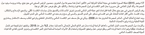 昨日,二十國集團領(lǐng)導(dǎo)人第十次峰會在土耳其安塔利亞閉幕。中國領(lǐng)導(dǎo)人習(xí)近平期間出席了峰會,并發(fā)表題為《創(chuàng)新增長路徑 共享發(fā)展成果》的重要講話,其中強調(diào)二十國集團要加強宏觀經(jīng)濟政策溝通和協(xié)調(diào),推動改革創(chuàng)新,構(gòu)建開放型世界經(jīng)濟。