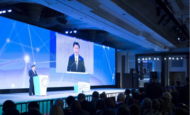 11月18日,國家主席習(xí)近平在菲律賓馬尼拉出席亞太經(jīng)合組織(APEC)工商領(lǐng)導(dǎo)人峰會(huì)并發(fā)表主旨演講。(新華社記者王曄攝)