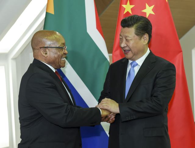 2015年7月9日,習(xí)近平在俄羅斯烏法會(huì)見(jiàn)南非總統(tǒng)祖馬。習(xí)近平指出:
