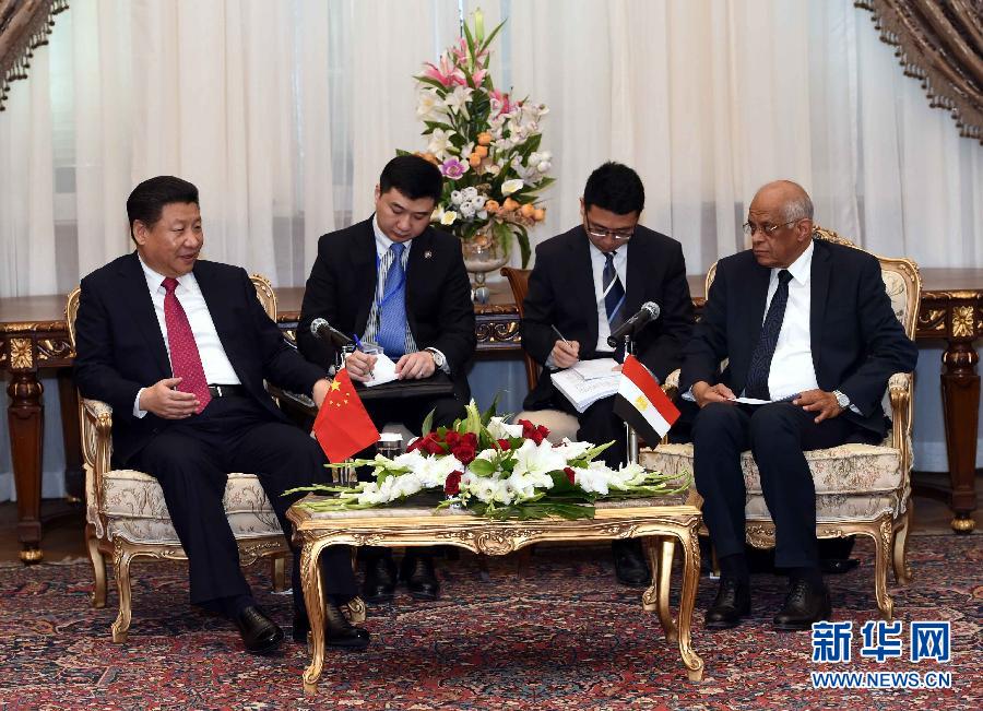 ??? 1月21日,國家主席習(xí)近平在開羅會見埃及議長阿里。新華社記者 饒愛民 攝