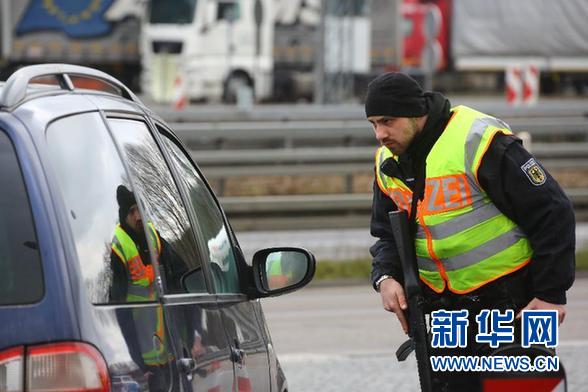 在比利時東部靠近德國亞琛的邊界,德國警方設(shè)置了路障,檢查過往車輛。記者在高速公路檢查站看到,兩名德國特警把守兩邊,所有車輛逐一通過。需要進(jìn)一步檢查的車輛按指揮進(jìn)入特定區(qū)域,德國警方要求被檢車輛司機(jī)出示證件,并對汽車內(nèi)部進(jìn)行仔細(xì)翻查。檢查站中??苛耍保岸噍v各型警車,值勤警察荷槍實彈,檢查站旁還有一架警方直升機(jī)。