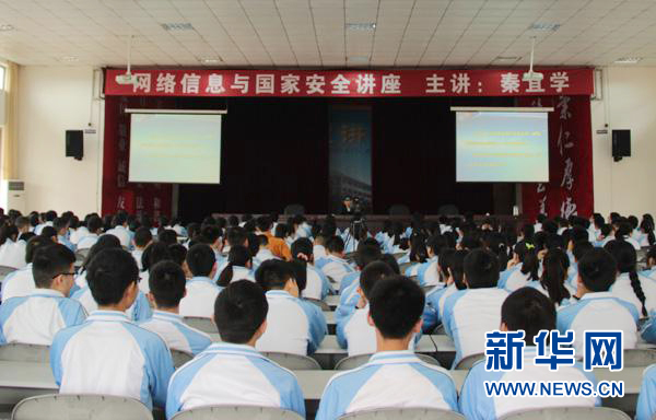 ????隨著互聯(lián)網(wǎng)的快速發(fā)展,網(wǎng)絡(luò)信息安全已成為關(guān)系國(guó)家安全的重大問題,受到全社會(huì)越來越多的關(guān)注和重視。全國(guó)首批“國(guó)家安全教育示范基地”四川省邛崍第一中學(xué)4月26日舉行國(guó)家安全教育講座的第三講《網(wǎng)絡(luò)信息與國(guó)家安全》。國(guó)防科學(xué)技術(shù)大學(xué)秦宜學(xué)教授為該校高一年級(jí)全體學(xué)生、老師講解有關(guān)網(wǎng)絡(luò)信息安全知識(shí)。