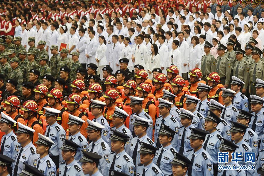 ??? 5月27日,駐杭部隊官兵、武警官兵、公安干警、志愿者、醫(yī)護人員、賓館保障人員及各界代表參加誓師大會。 當日,“決戰(zhàn)100天全力保峰會”迎接G20誓師大會在浙江杭州舉行。 新華社記者黃宗治攝